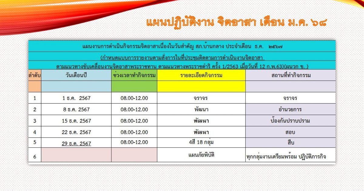 กิจกรรมจิตอาสาพระราชทานประจำเดือน มกราคม 2568