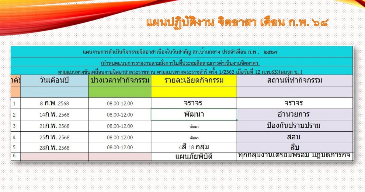 การดำเนินการตามกิจกรรมจิตอาสา ประจำเดือน กุมภาพันธ์ 2568